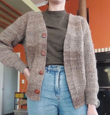 Hope you are doing well. Here are some photos of the finished cardigan as promised! I love the color variations in the yarn and how it contributes to the overall look of the cardigan. Very pleased with how it turned out. Thanks for being able to meet me at such short notice that morning. If I find myself in need of some more yarn I will let you know :)